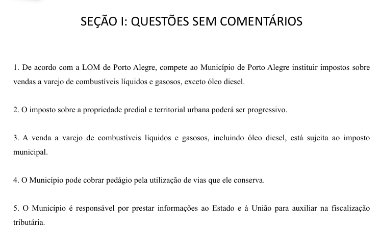 Questões de Legislação Tributária Municipal de Porto Alegre