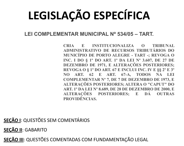 Conteúdo Completo e Atualizado: Todas as nuances da Legislação Tributária Municipal de Porto Alegre cobertas de forma clara e objetiva, dividida em 20 pdfs por norma jurídica.